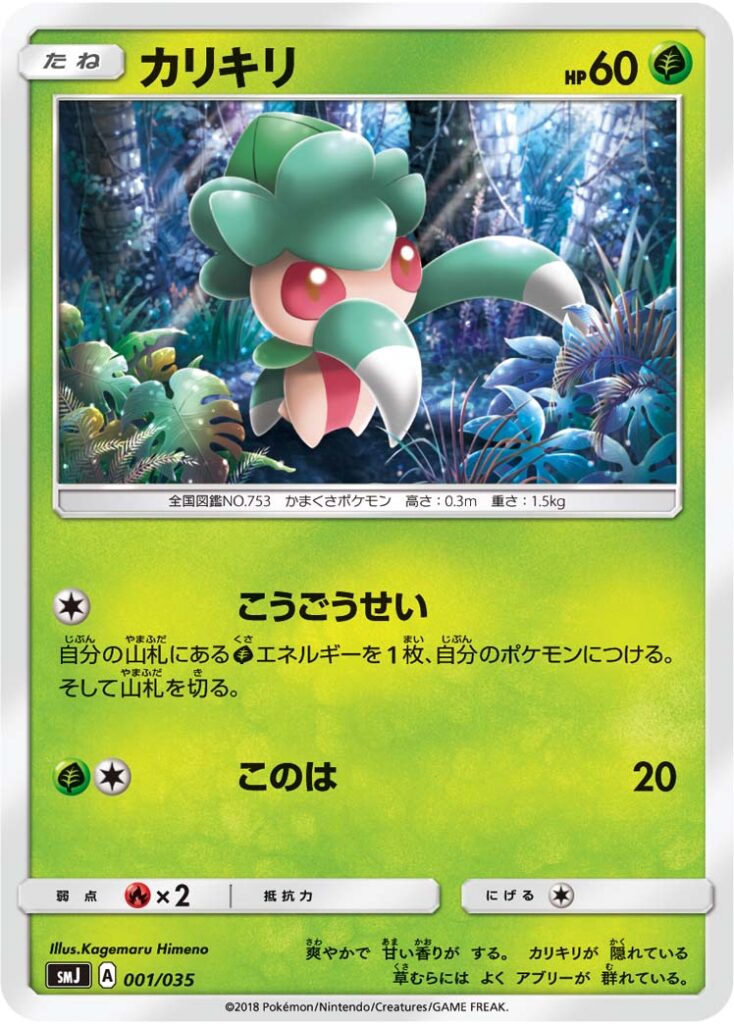 エネルギーを1枚、自分のポケモンにつける。そして山札を切る。| 弱点 | 抵抗力 | にげる |