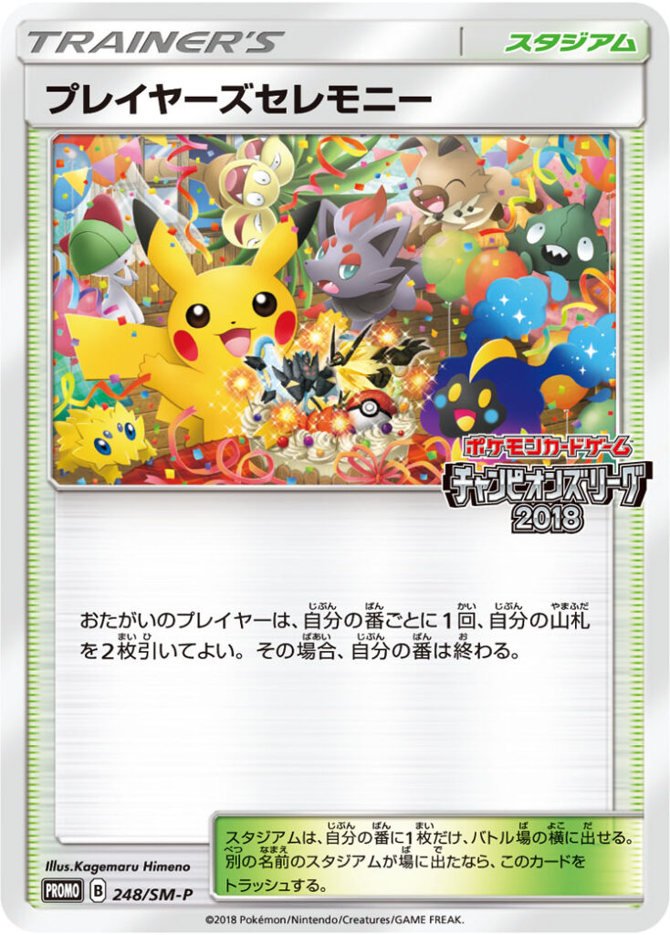 スタジアムは、自分の番に1枚、バトル場の横に出せる。別のスタジアムが場に出たなら、このカードをトラッシュする。同じ名前のスタジアムは場に出せない。